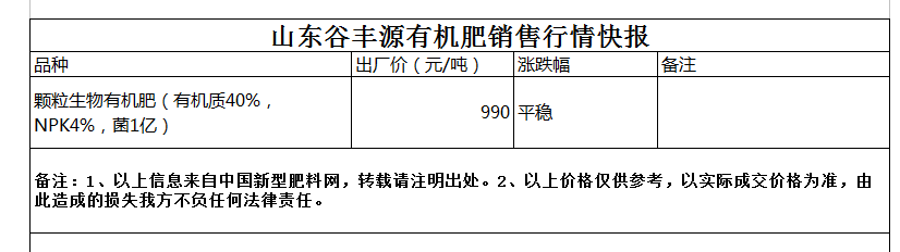 山東谷豐源有機肥銷售行情快報